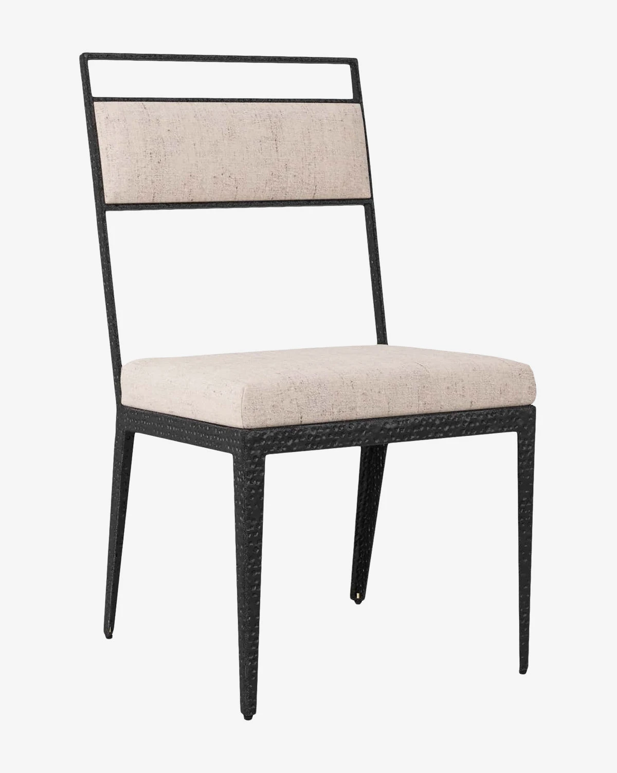 Artfully designed with a forged, blackened iron frame, the Pitman Chair brings subtle beauty to the dining table. Complete with a linen upholstered seat and seat back, the streamlined structure has a timeless appeal.