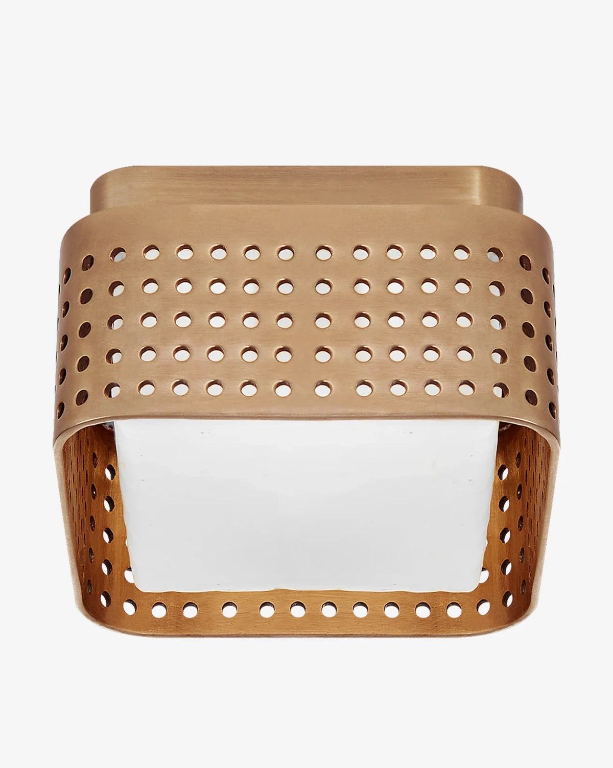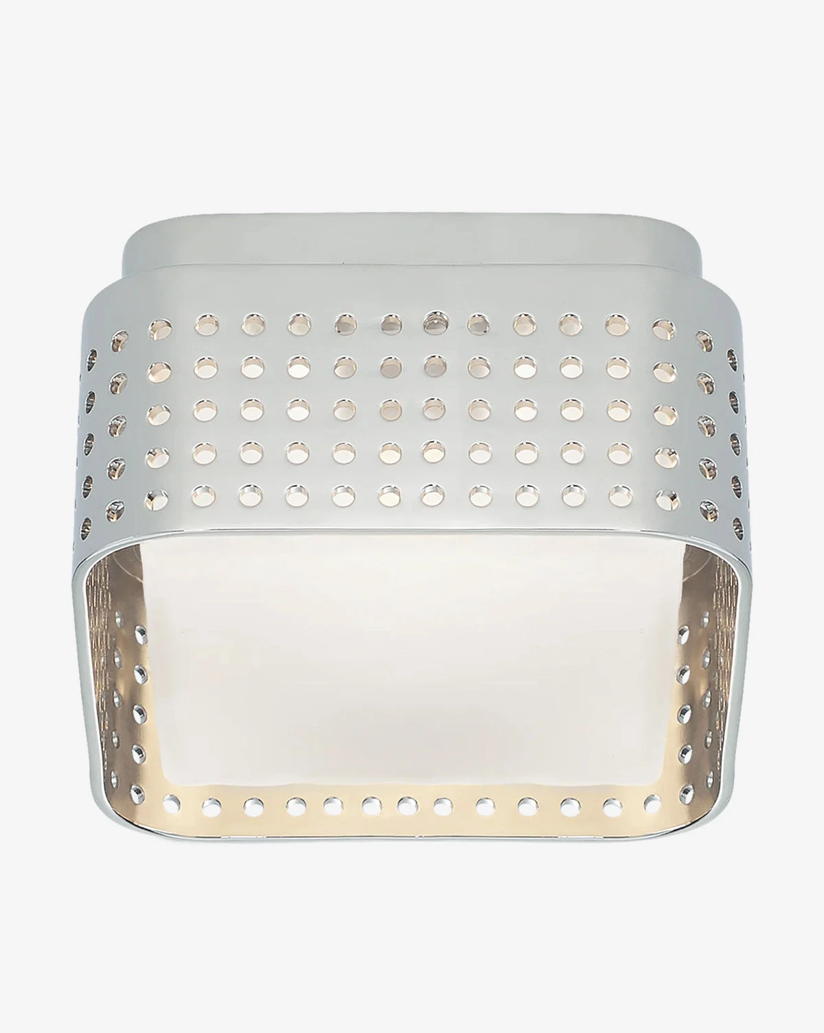 The Precision Flush Mount is an innovative take on classic ceiling lighting. Â Its clouded glass shade is thoughtfully contrasted with a uniformly perforated metal cage is that uniquely diffuses the light.