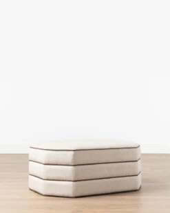 Our Rafferty Ottoman is bold and geometric in design yet neutral in palette for easy styling with your modern decor. Made with a bisque performance linen featuring cocoa piping, the upholstered ottoman adds just the right amount of elevated comfort anywhere it is placed.