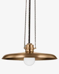 The Rainhill Pendant strikes a balance between pronounced lines and elegant curvature. Crafted from patina brass finished steel, the sconce makes a soft statement in lighting designs anywhere in the home.