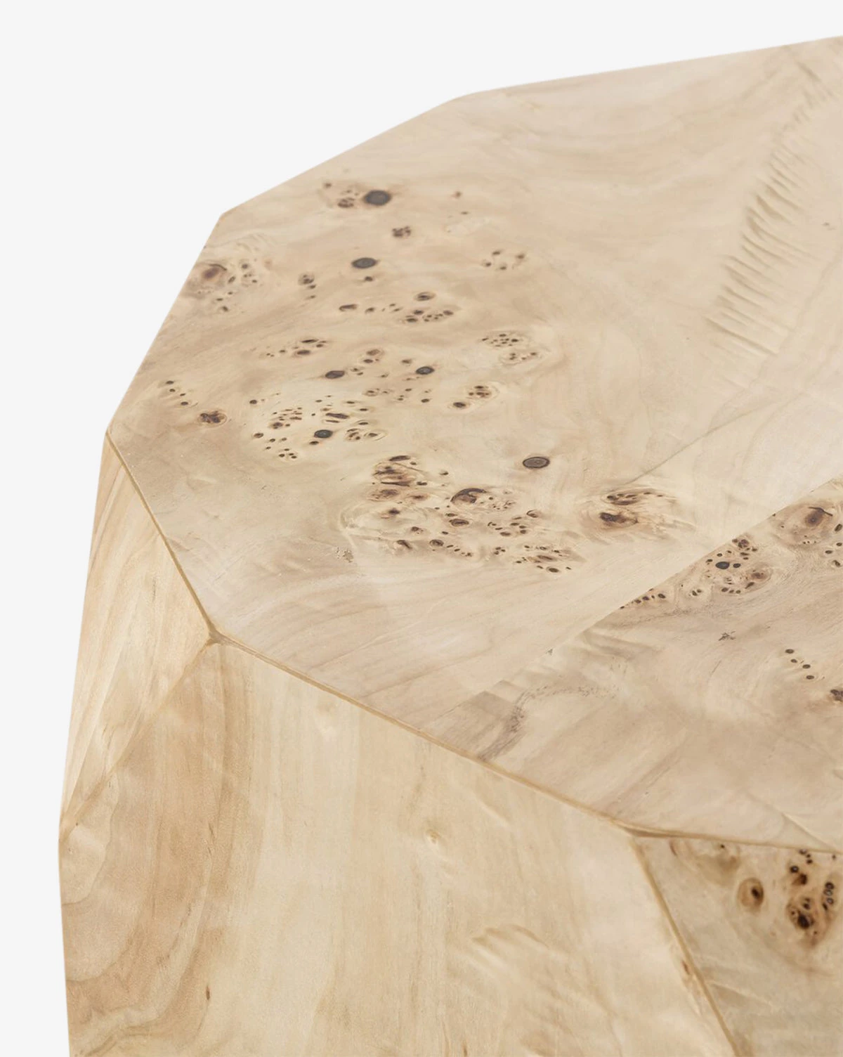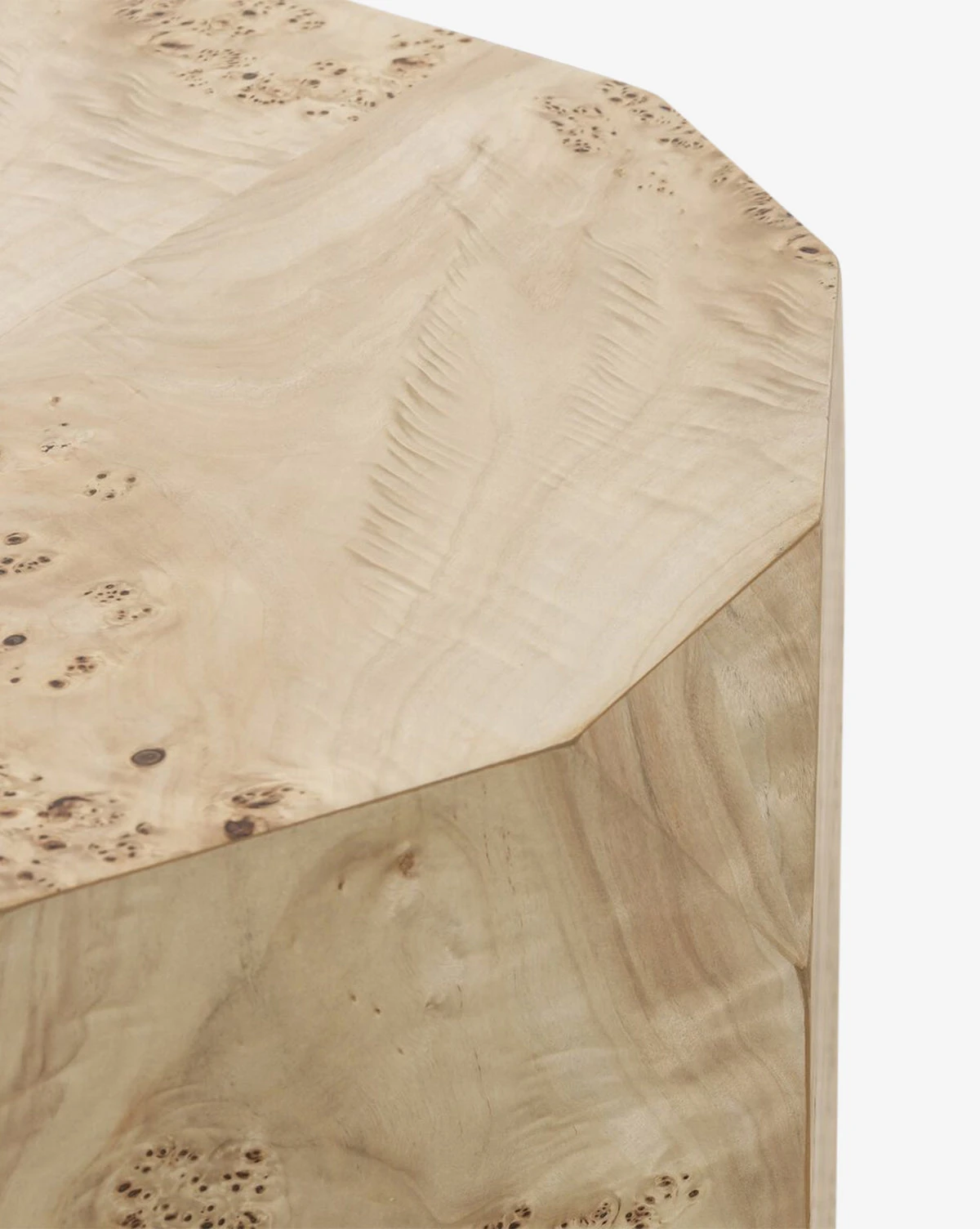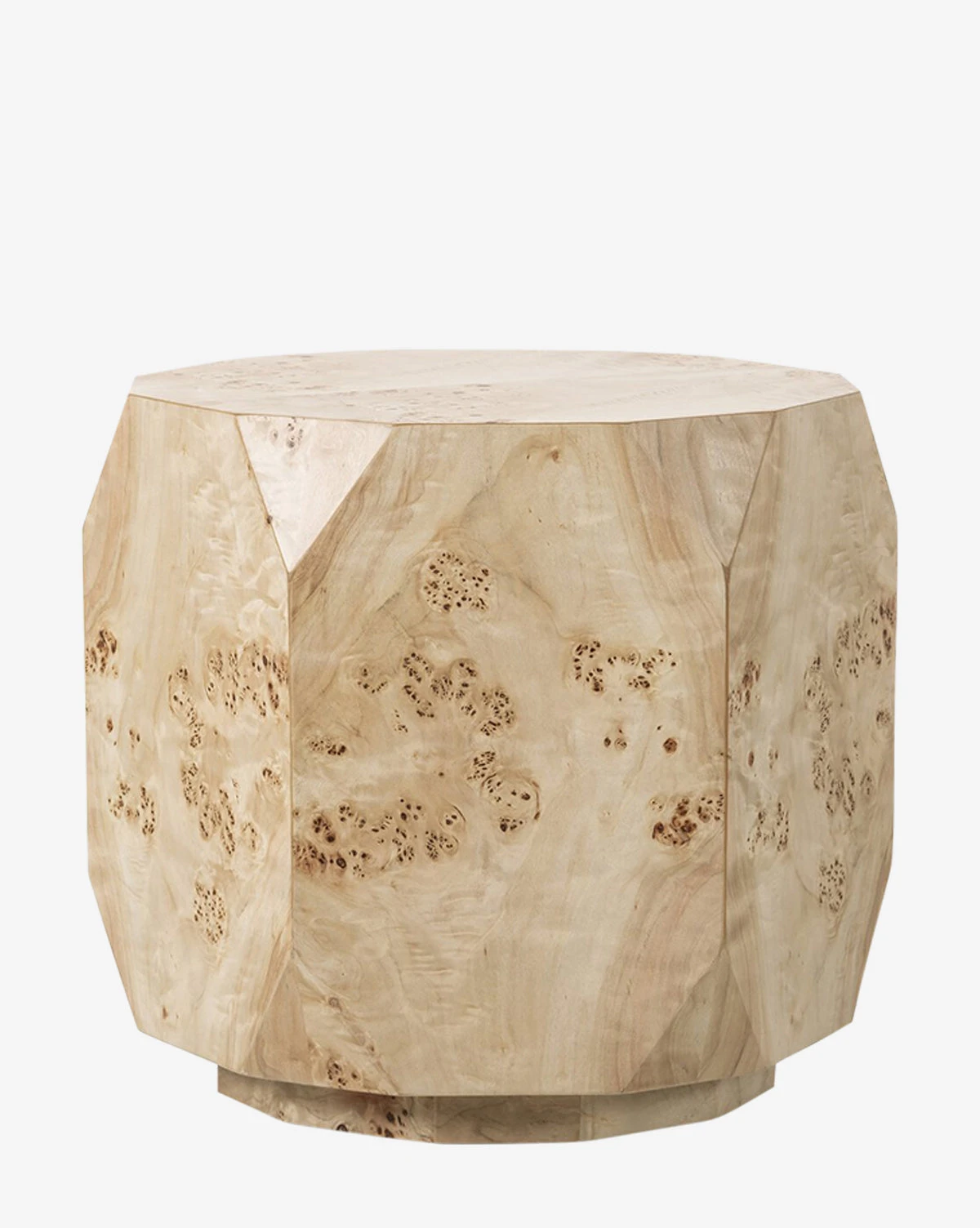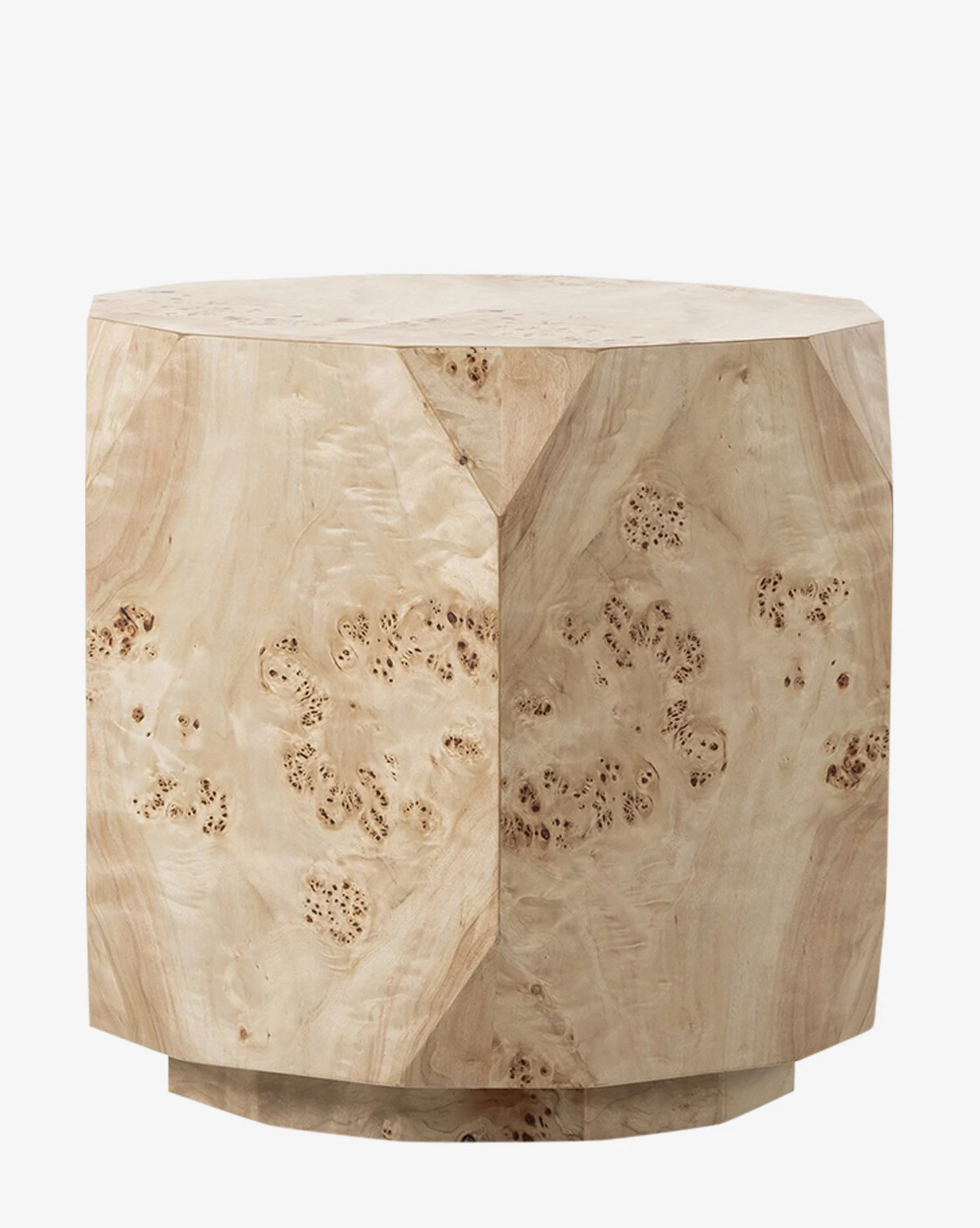 Crafted from light poplar burl, the Remy End Table showcases a striking yet natural form that exudes organic elegance. Its subtle plinth base provides a grounded, balanced look that compliments a variety of interior aesthetics. Â