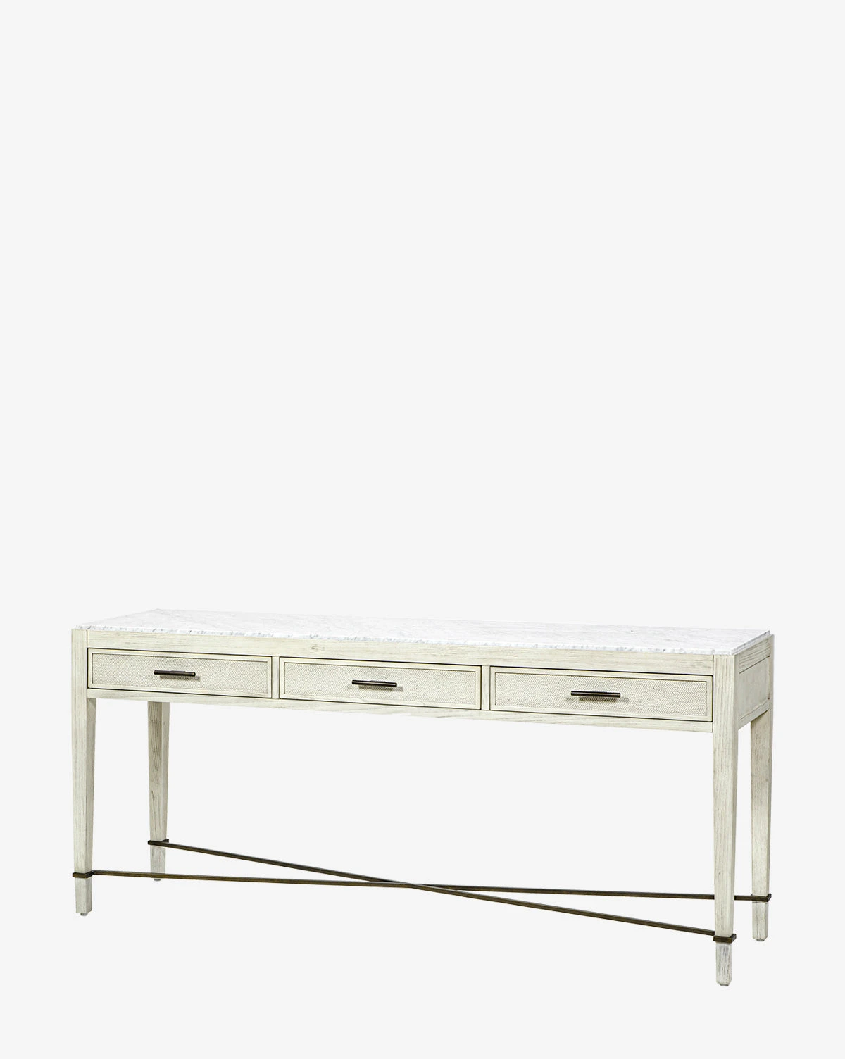 With elegantly mixed materials, the compelling yet neutral Reyes Console elevates your home with its thoughtful details. Made from whitewashed wood with caning on the drawers, the console’s marble tabletop brings sleek and sophisticated texture to the piece.