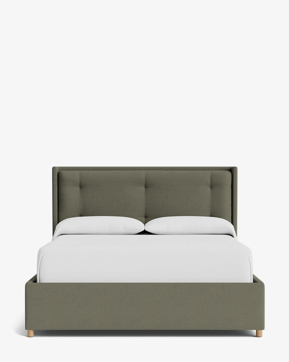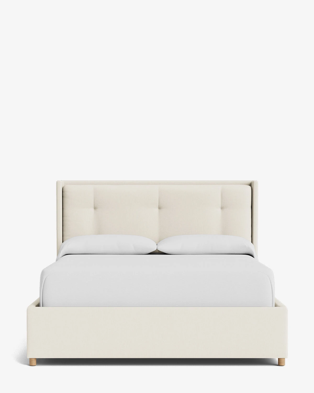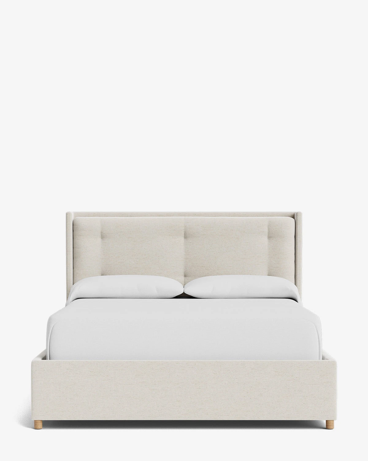 With a bench-made frame, the Ria Bed Low Headboard is customizable in a selection of our favorite high-quality fabrics. The tufted headboard brings both simplicity and elegance to bedroom designs in each of the colorways. With a low frame and subtle wood block feet, this upholstered bed elevates your bedroom style with its detail and refinement.