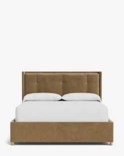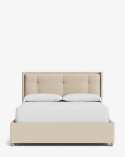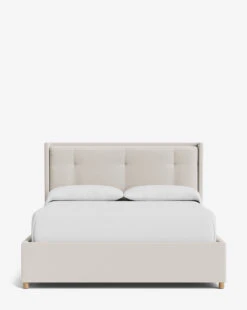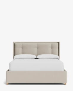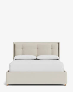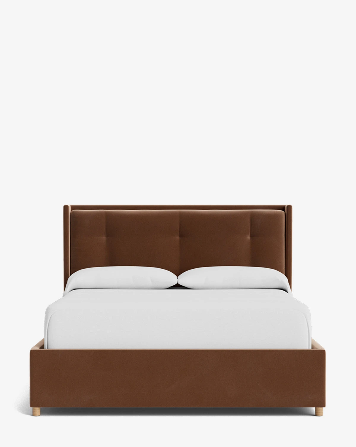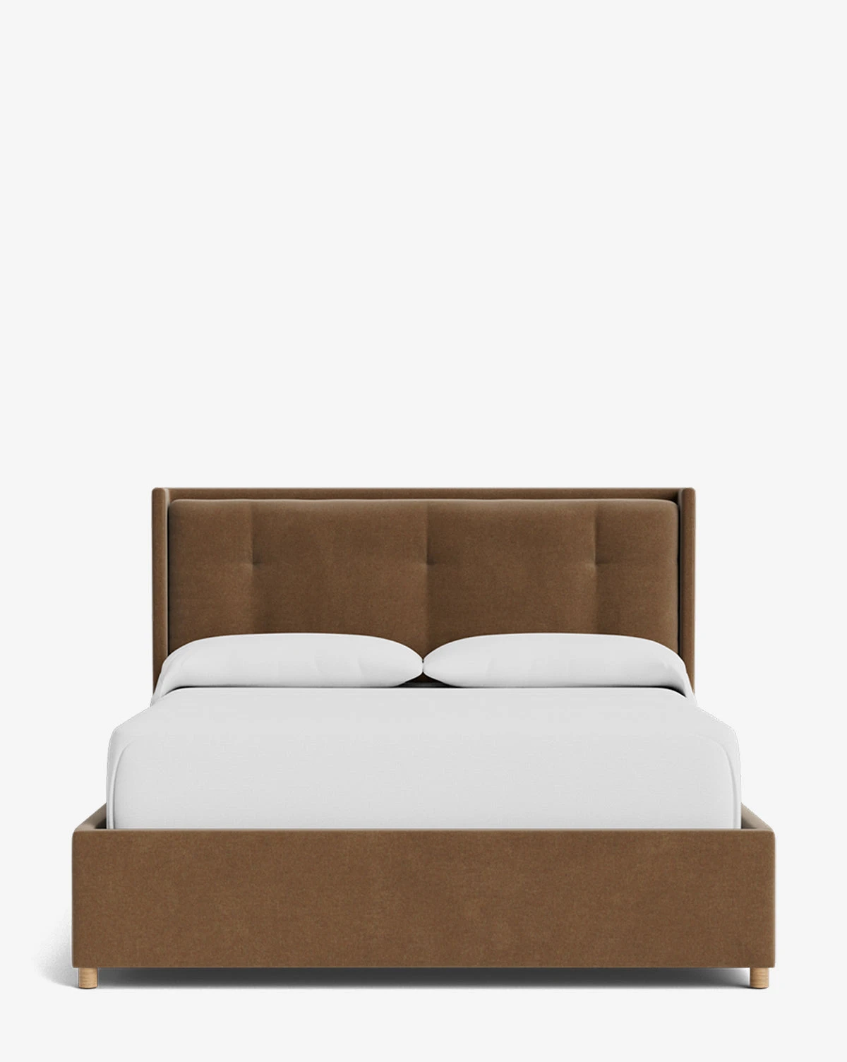 With a bench-made frame, the Ria Bed Low Headboard is customizable in a selection of our favorite high-quality fabrics. The tufted headboard brings both simplicity and elegance to bedroom designs in each of the colorways. With a low frame and subtle wood block feet, this upholstered bed elevates your bedroom style with its detail and refinement.