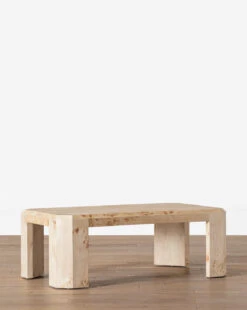 With organic detail and geometric construction, our Rocio Burl Coffee Table elegantly pairs modern style with natural materials. The wide coffee table is made from burl wood with a natural finish, highlighting the unique features and contrasting tones of the wood grain and displaying the table’s vintage-inspired design.