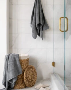An unassuming take on the laundry basket, the Round Water Hyacinth Baskets are crafted with an iron frame and woven natural material for a high-quality piece that boasts an organic feel. Its removable lid, hole handles, and white fabric liner are functional features that elevate its use, while its rice nut weave and natural materials give a warm, thoughtful aesthetic to your space.