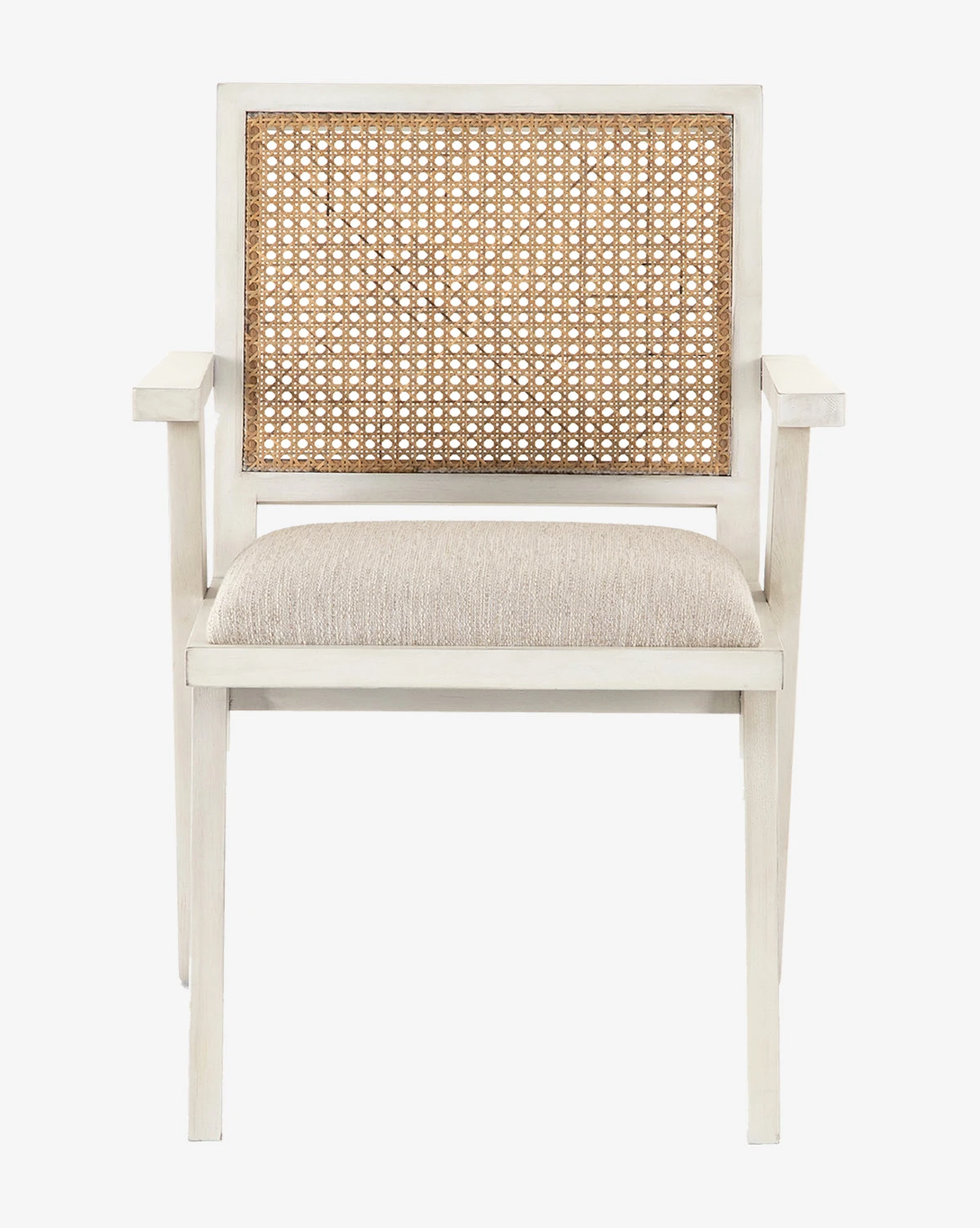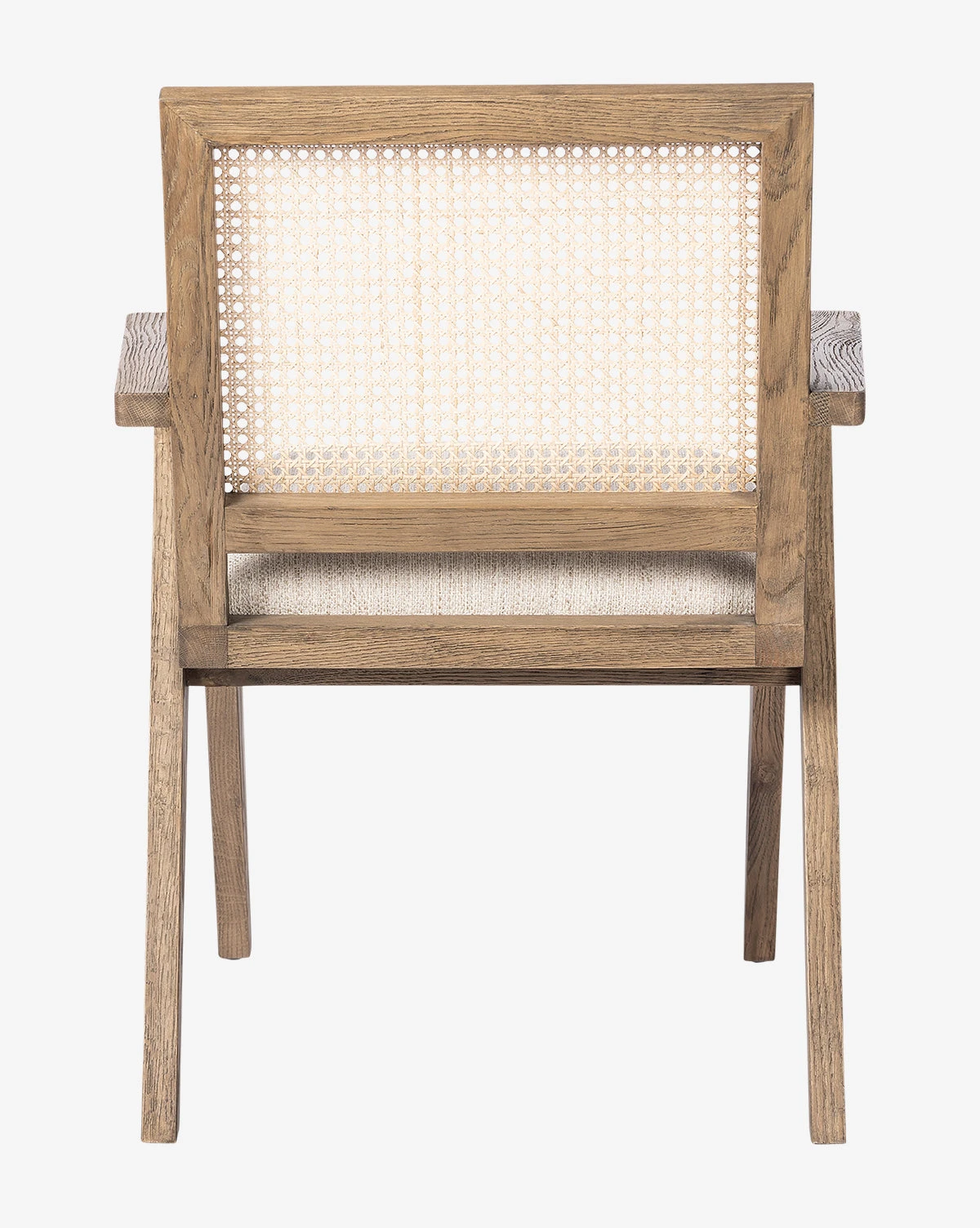 Inspired by french architecture, the Rowena Chair does monochromatic in a whole new way. With plenty of texture, this chair makes a statement with its solid oak framing and woven cane back, fitted with an upholstered cushion for comfort this chair instantly elevates your dining space.