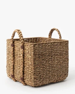 Made from braided seagrass and wicker, the Salter Woven Square Basket brings extra storage to your space with its handled, square form. Styled in pairs or on its own, this basket adds the perfect amount of texture to your home.Â