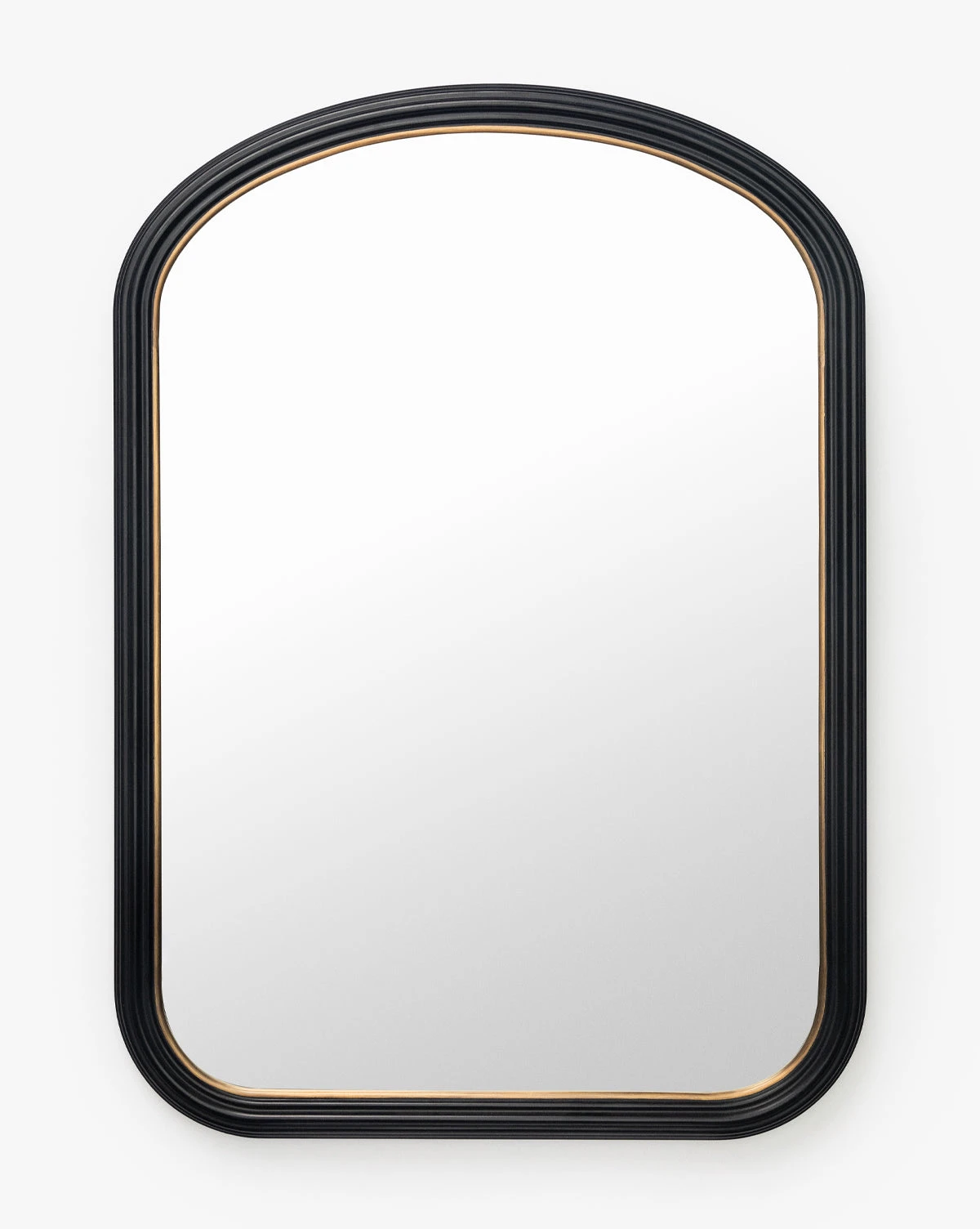 With rounded edges and a thick frame, the Samuel Wall Mirror is refined and shapely. The wood frame has a black finish, for a simple aesthetic complemented by ridged detail in the material. In a transitional style, the shelf mirror brings an artistic touch to your walls. Â