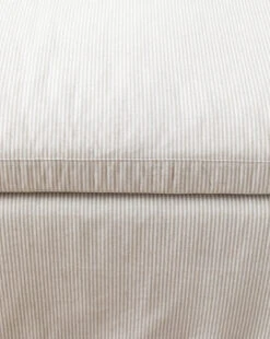 In an inviting symmetrical design, the Scaletta Bench is both casual and elevated. Upholstered in a natural and ivory stripe linen, the ticking stripe bench lends comfort and dimension to your styling.