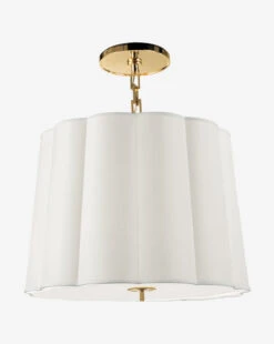 This simple scallop chandelier has a silk shade that will illuminate your space with a soft glow. We love its feminine shape and chain links in any finish!