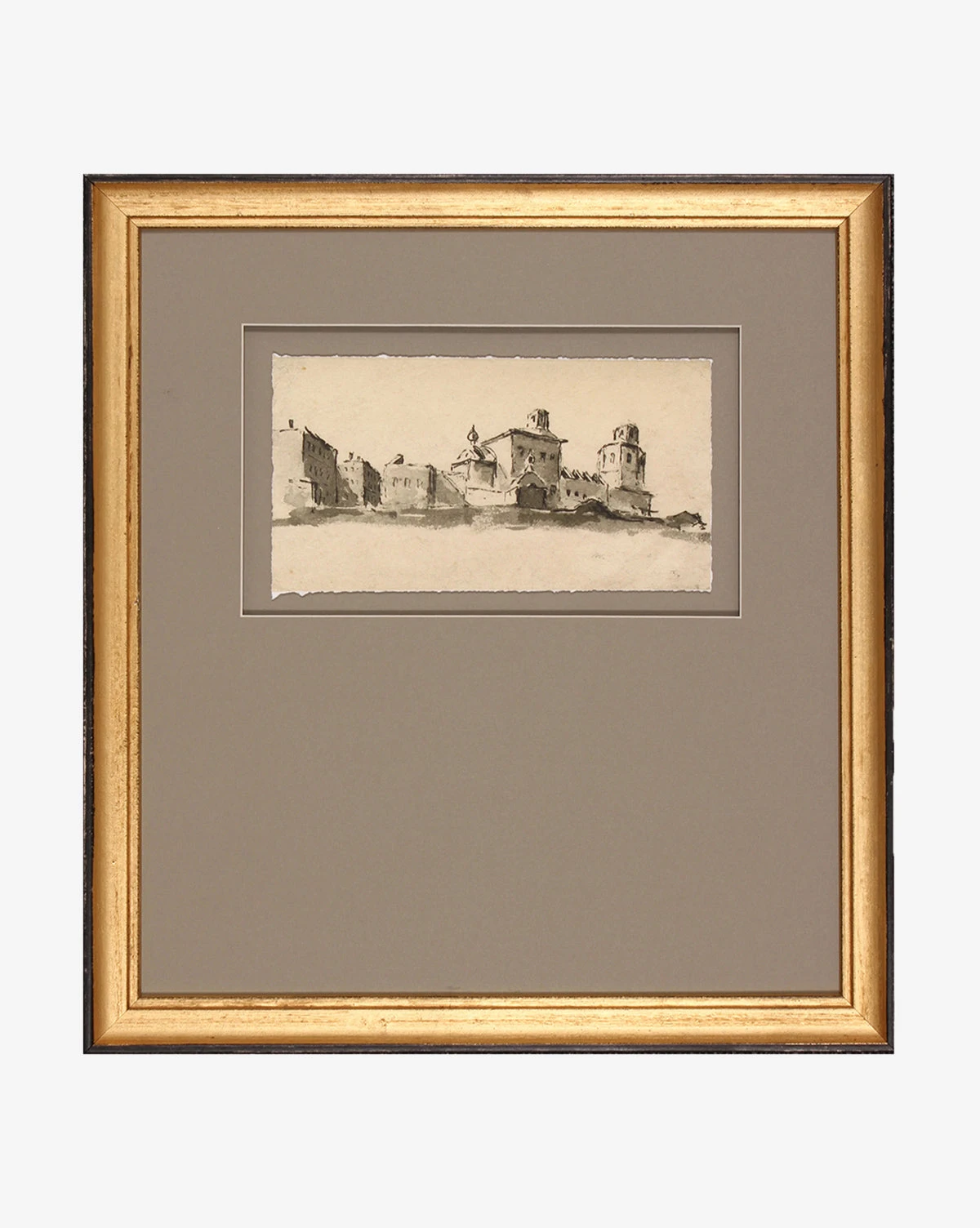 With a subtle composition, Sepia City is inviting and intricate. The piece depicts a romantic town scene with both sketched lines and brushwork. Within a mat and a wood frame finished in gold and black, the artwork brings gallery quality to your decor. Â