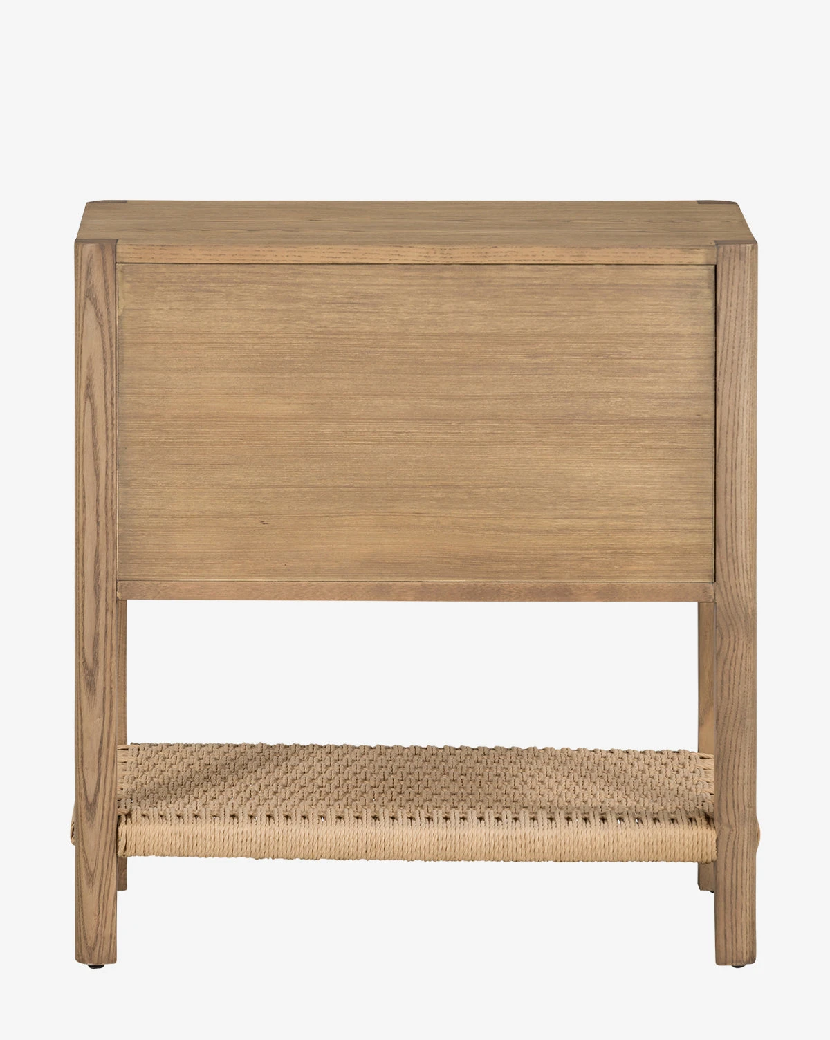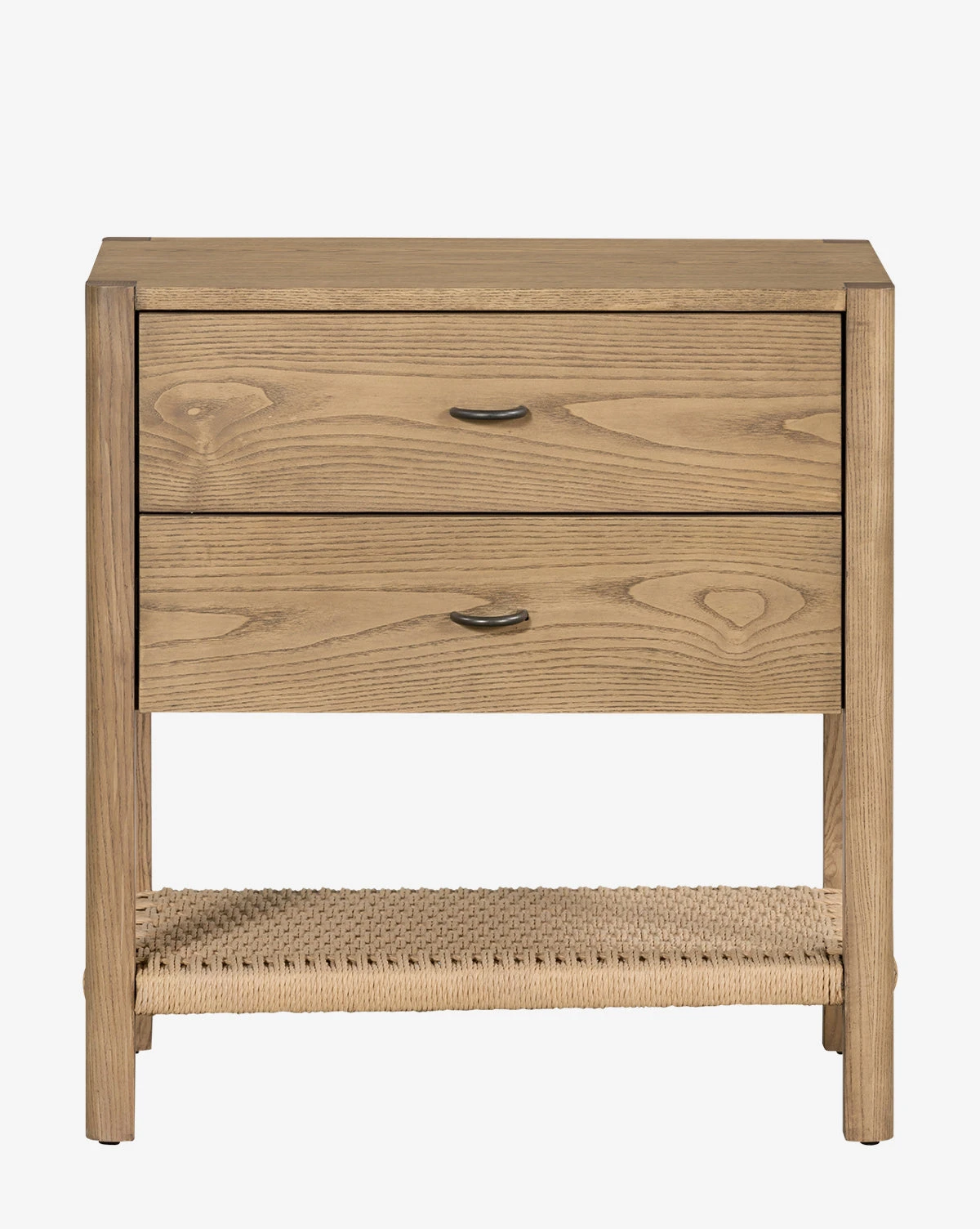 Crafted from solid ash, the Sequoia Nightstand is inspired by Danish design. Its subtle details elevate the simple presence of this nightstand, with the unique iron drawer pulls and the stretcher-style bottom shelf made from woven paper cord. Its two spacious drawers allow for elegant functionality in your bedroom decor.