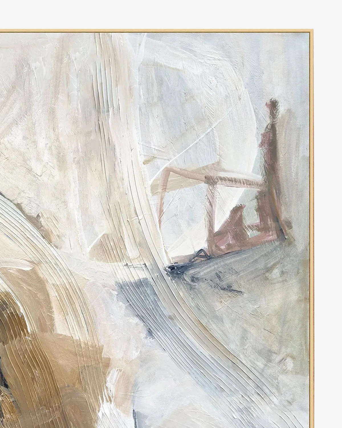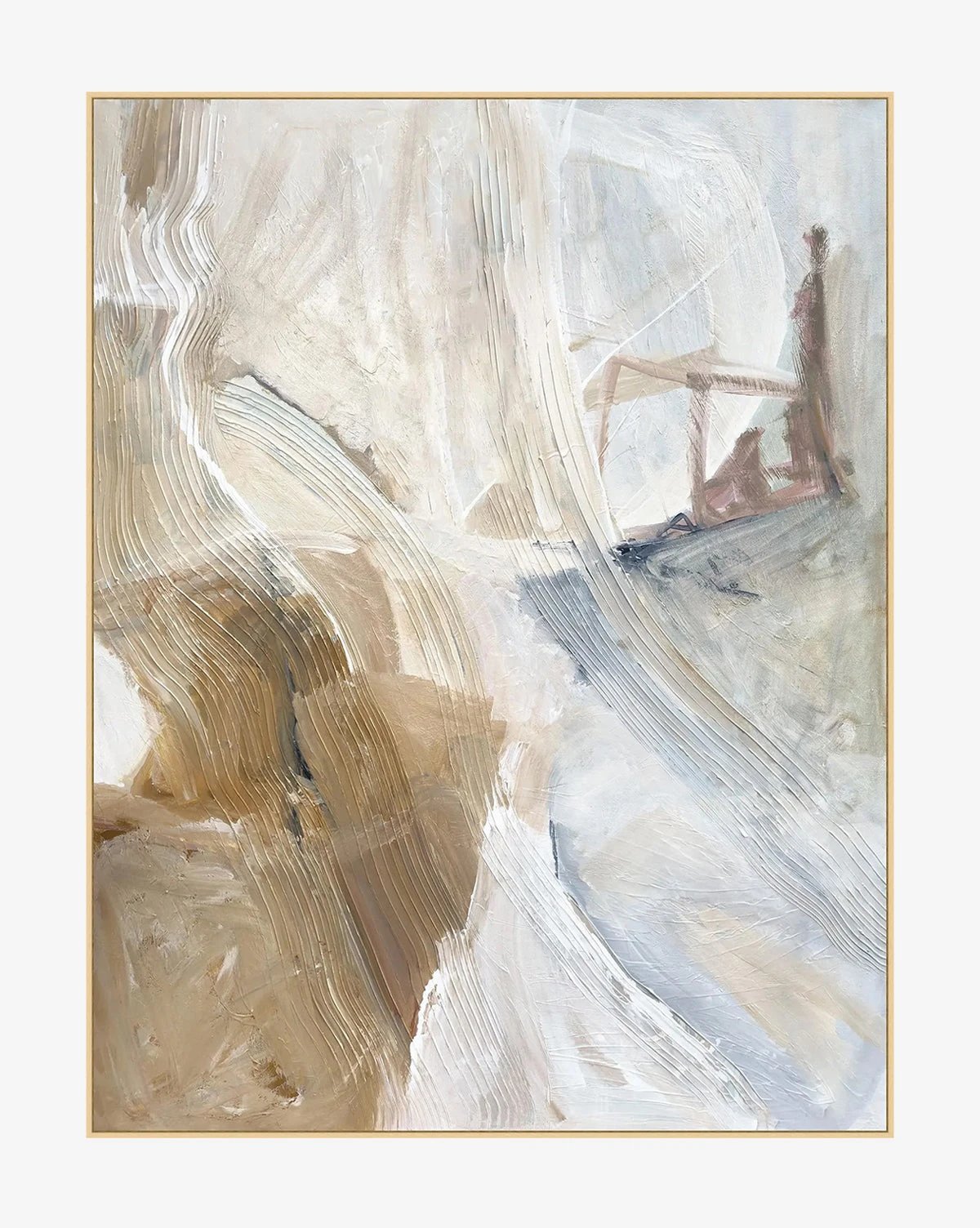 Featuring an abstract composition in neutral tones, Serenity Sands brings a beautiful combination of movement and tranquility to home styling. Printed as a giclee on gallery-wrapped canvas, this artist-enhanced piece is presented in a frame with a natural finish for a touch of refined elegance.