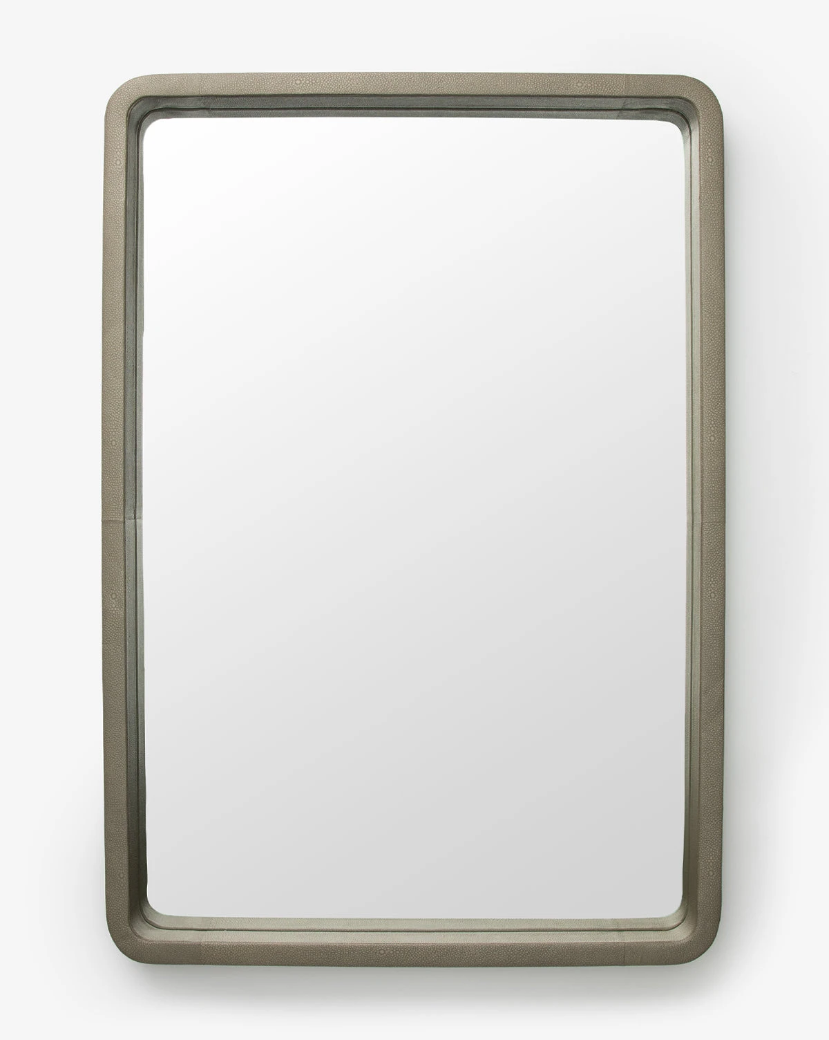 Modern and textural, our Shagreen Rectangle Mirror has a refined appeal. Its straightforward frame is wrapped in shagreen and subtly rounded at the corners, bringing an elevated and versatile element to your space.