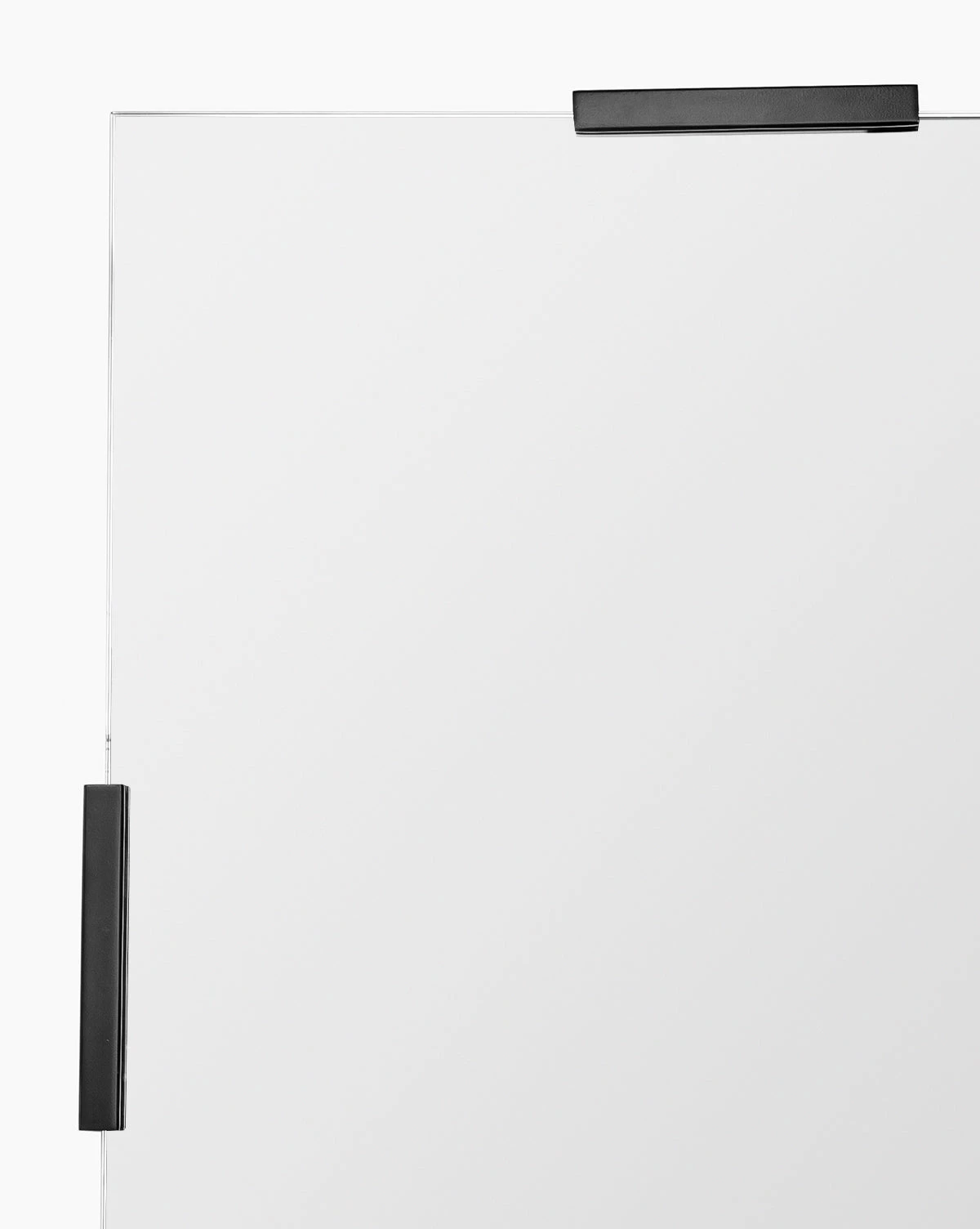 In a clean, frameless design, the Slade Mirror brings approachability to modern sensibilities. In three three finishes, its accent pieces give structure to its shape and a touch of metallic material to the room.