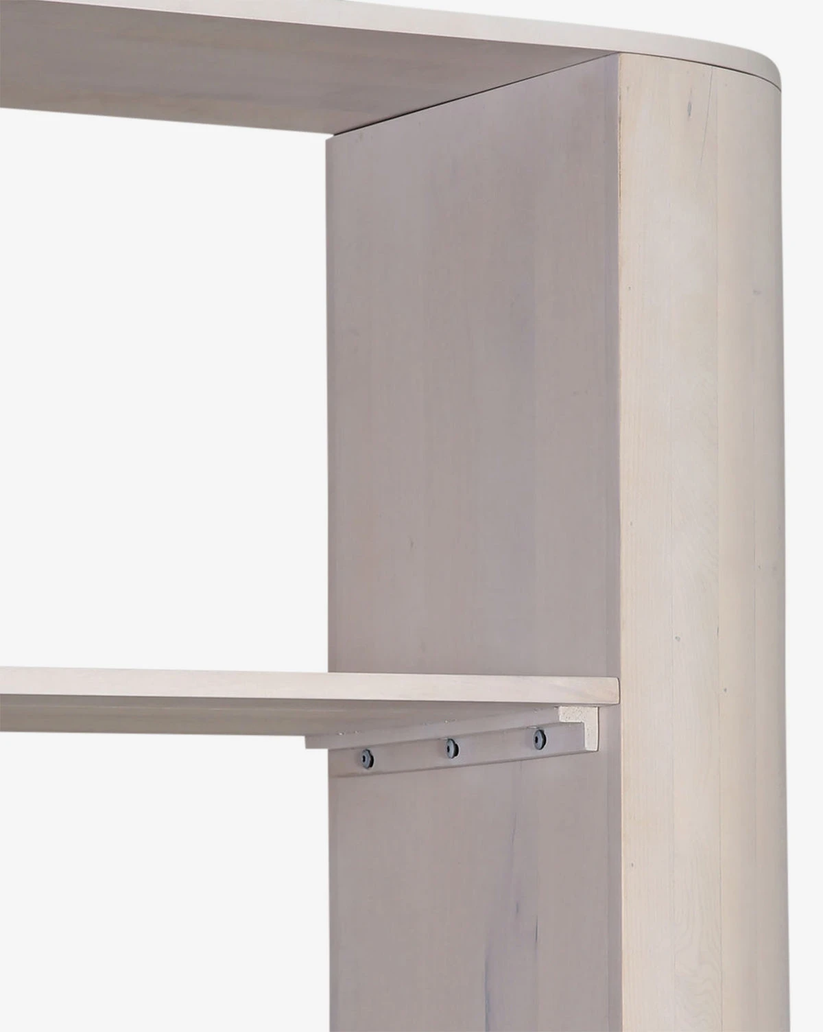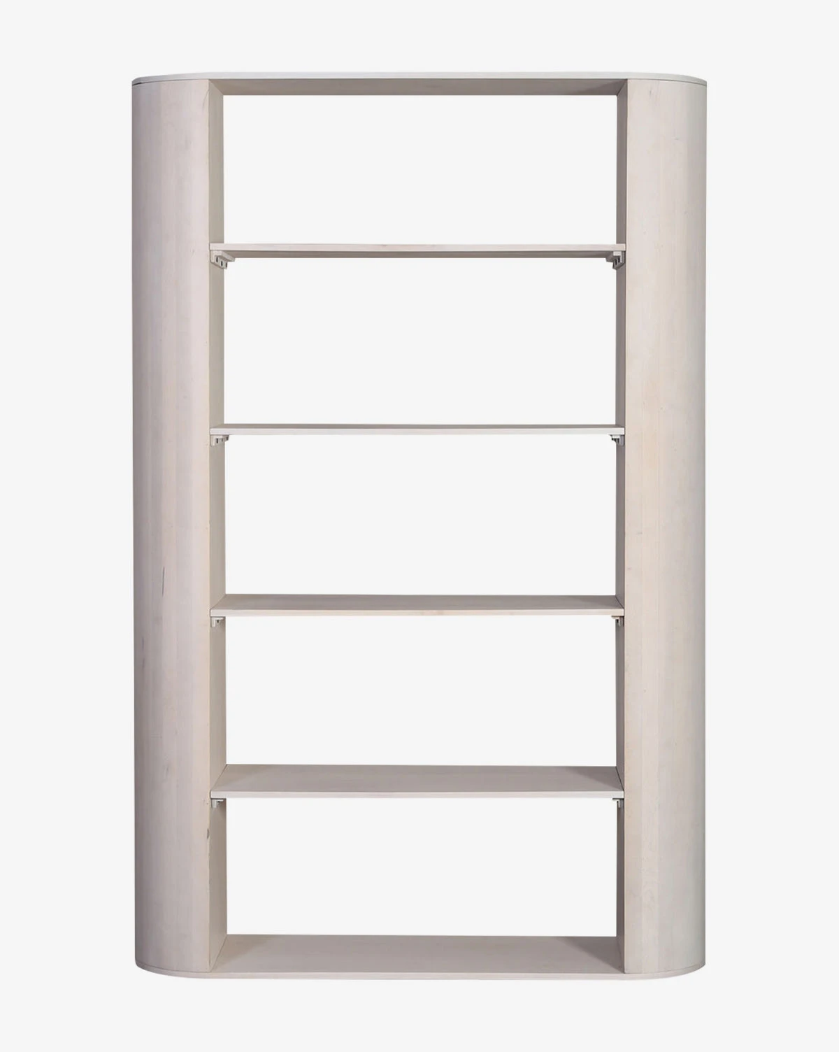 Sleek and innovative, the Somner Bookcase is made from maple wood in a white finish. Its updated take on the classic bookcase features rounded edges, bringing shape and dimension to the open and practical storage.