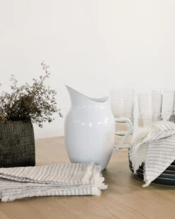 Crafted from 100% cotton, the Striped Fringe Napkins are designed by Pom Pom at Home to bring casual elegance to your tablescape. With beautiful neutral tones, and a subtle fringed edge, this napkin blends seamlessly with both modern and traditional styles.
