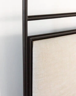With a modern take on a classic design, our Sutherland Canopy Bed makes a grand statement in your bedroom. Featuring a sophisticated dark finish, its unique construction combines dimension with traditional style from the metal frame to the linen upholstered headboard.