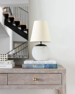 From the circular base to the tapered shade, our Terri Round Accent Lamp exudes sophistication with ease. With a choice of either a refined alabaster stone base, or a more glamorous crystal, this lamp not only brightens up the corners of your room, but adds unique dimension while doing so. Whether it’s styled as part of your entryway vignette, or lending depth on a side table, its versatile form blends seamlessly in both modern and traditional spaces.