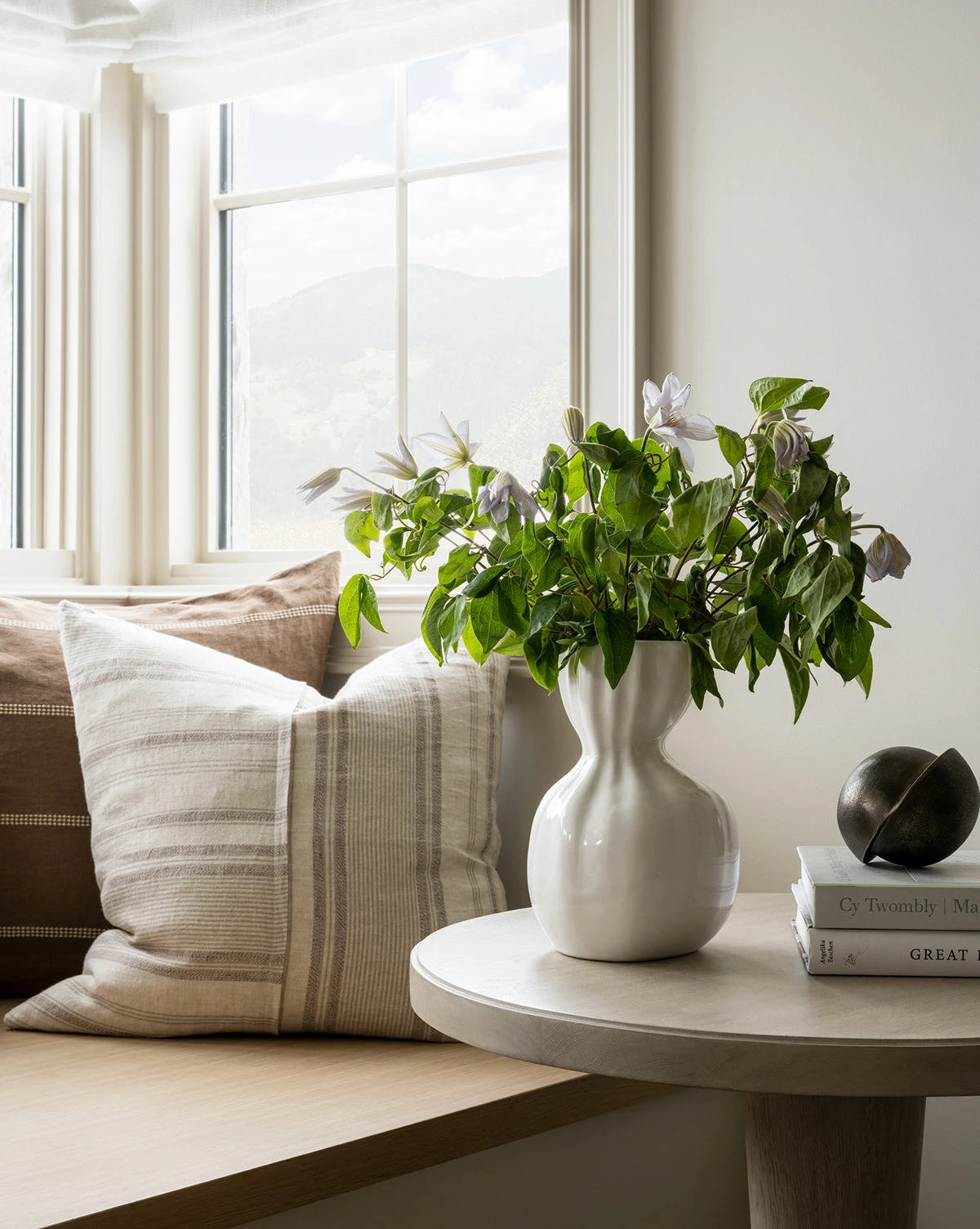With a unique form, the Thessaly Vase brings a modern feel to your built-in shelves or console table. The vase is made from stoneware and finished with a clean white glaze, bringing a neutral element to your styling with its sculptural design.