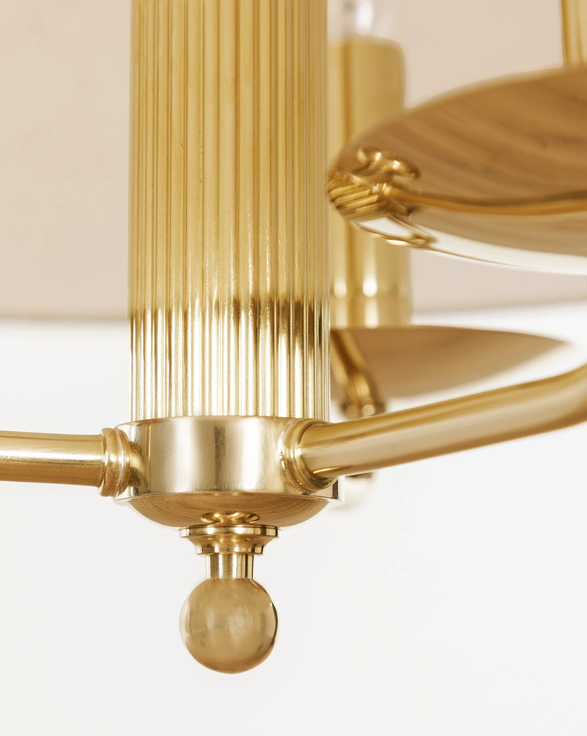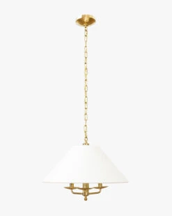 Designed by our in-house team, our Townes Pendant elevates your home lighting with elegant style and enduring character. It features reeded brass rods, a candelabra shape, and a ball pip finial for a luxurious look that is distinctive yet classic. The sophisticated frame is beautifully softened with a tapered linen shade, creating harmonious balance and timeless appeal.Â