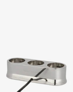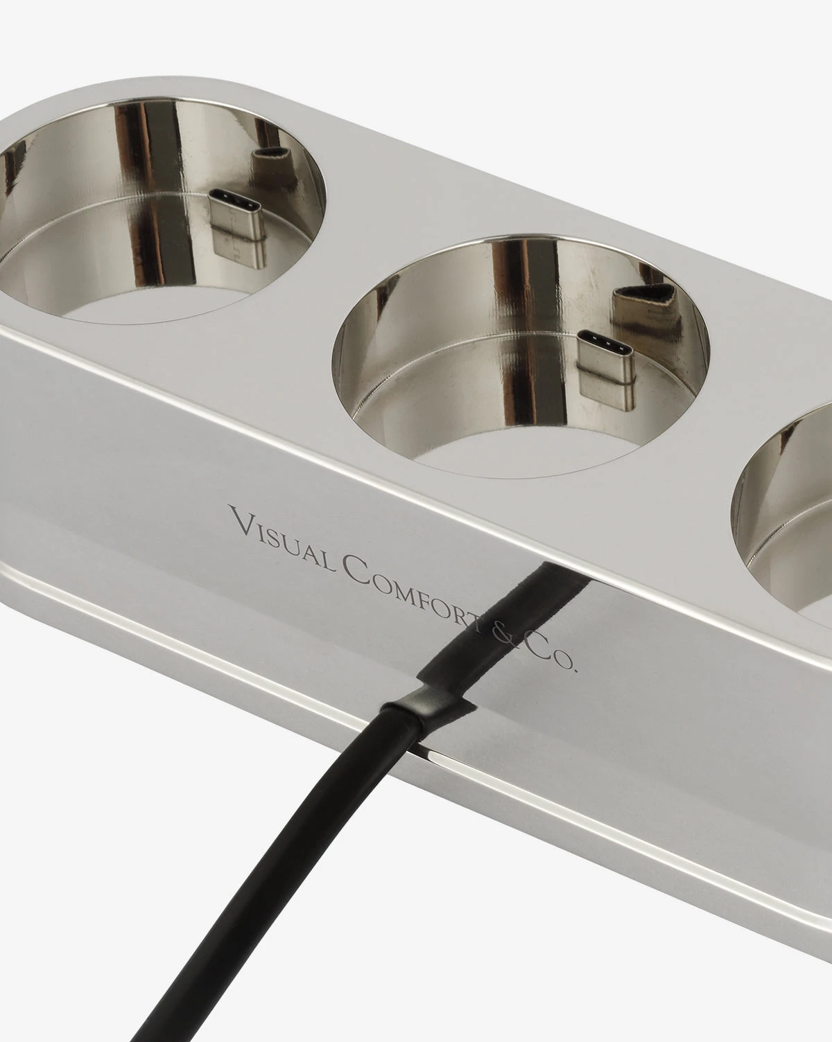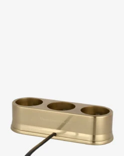 Keep your devices organized and charged while adding a touch of sleek sophistication to your space. Finished in your choice of brass or nickel, the Triple R45 Universal Charging Station features a streamlined design that blends style and functionality.Â