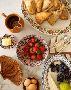 Featuring a beautiful hand-painted green and pink grapevine motif, Sharland England’s Vine Serving Platter is a timeless piece. The handmade ceramic platter is a must-have for hosting, bringing both character and elegance to your gatherings.