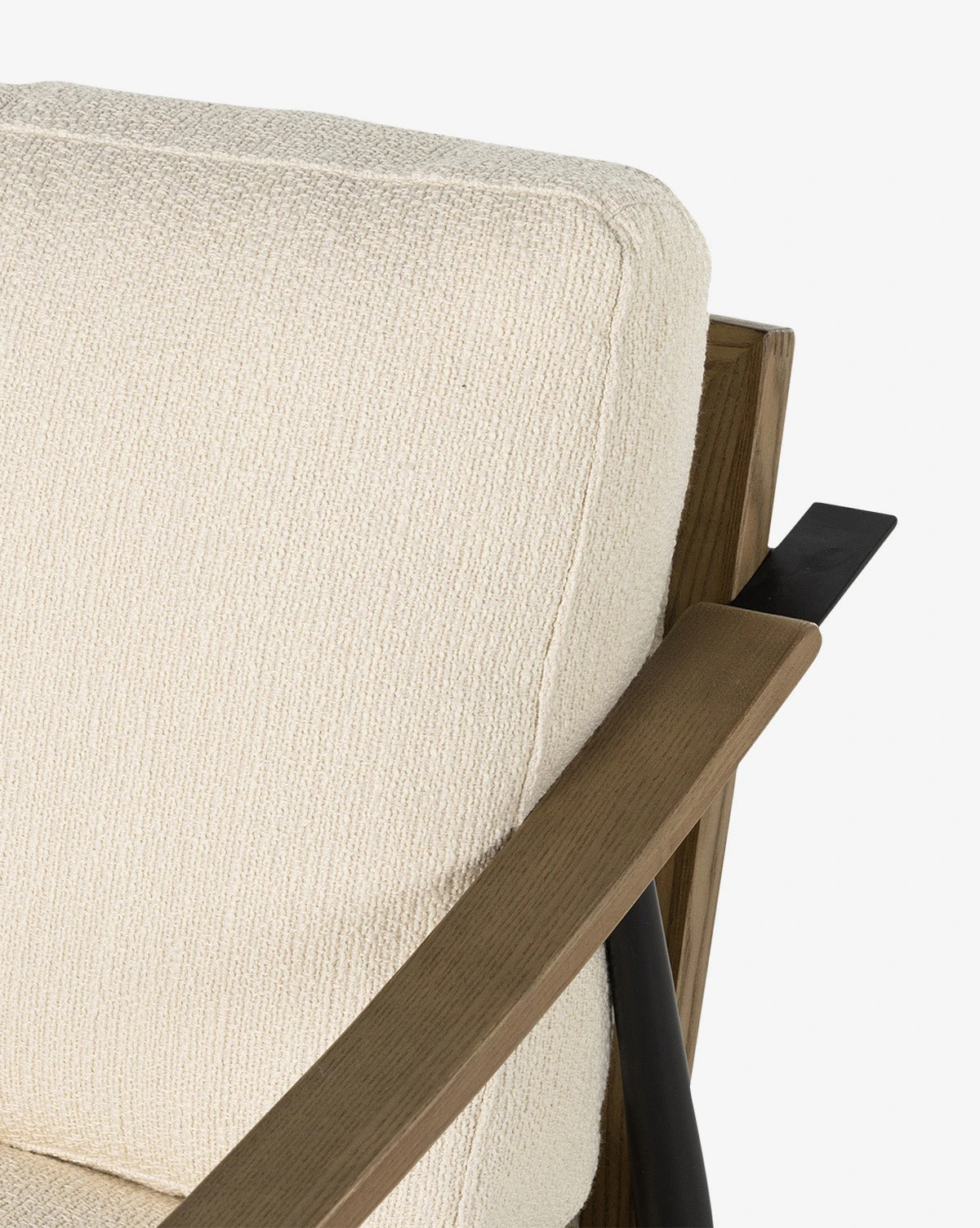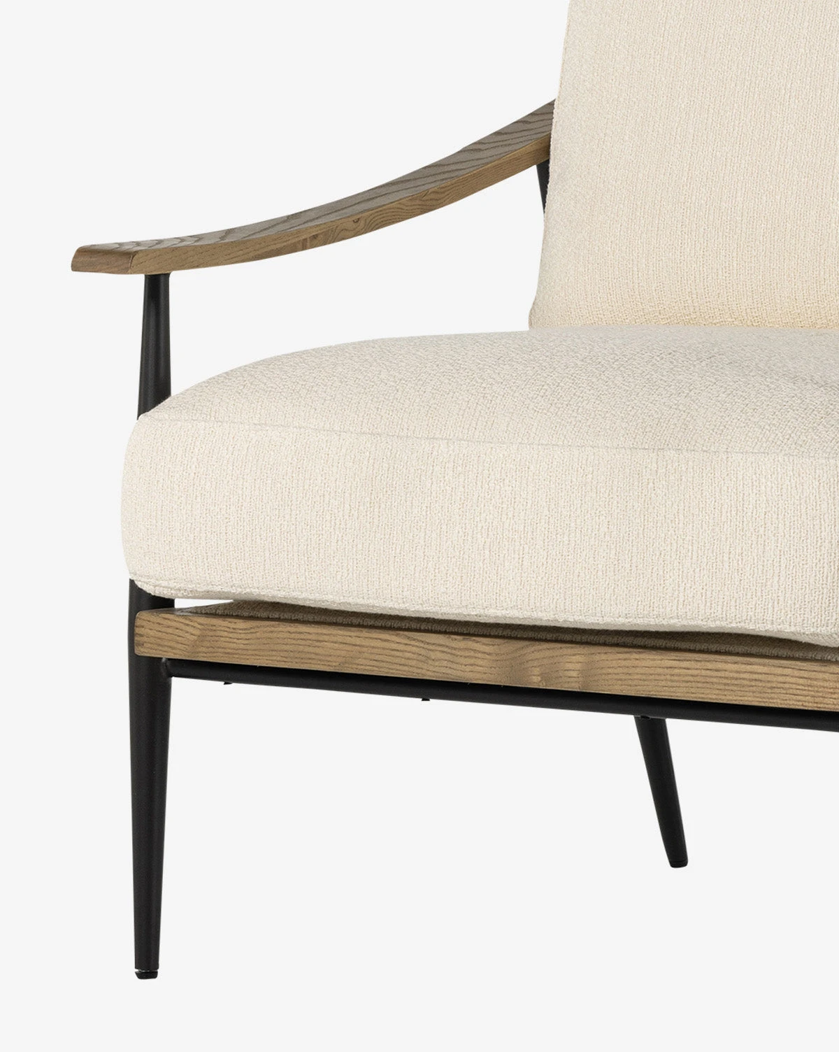 Crafted from a masterful mix of materials, the Wallace Chair is the epitome of comfort meets style. From the sloped wooden arms to the gunmetal finished legs.