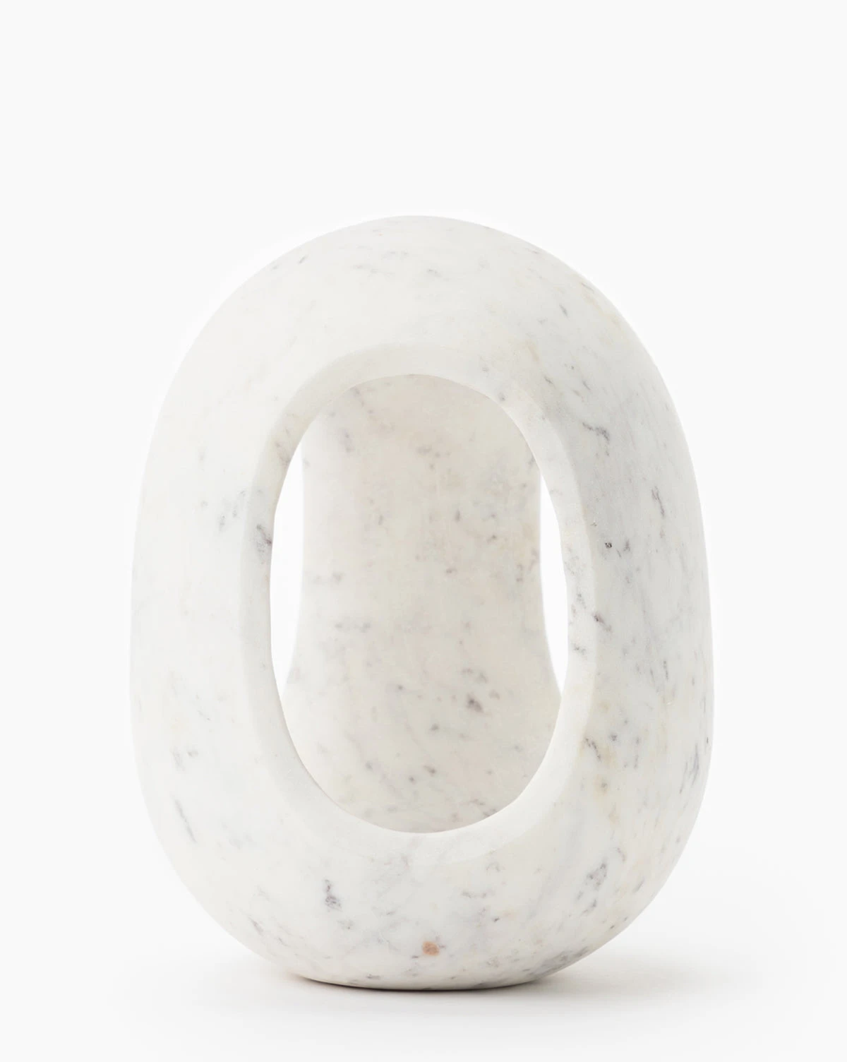 Hand-carved from a single piece of stone, the White Marble Sculpture is a striking accessory with its contemporary form. With an open construction, the white and gray marble add dimension to your space, while maintaining a refined subtlety.