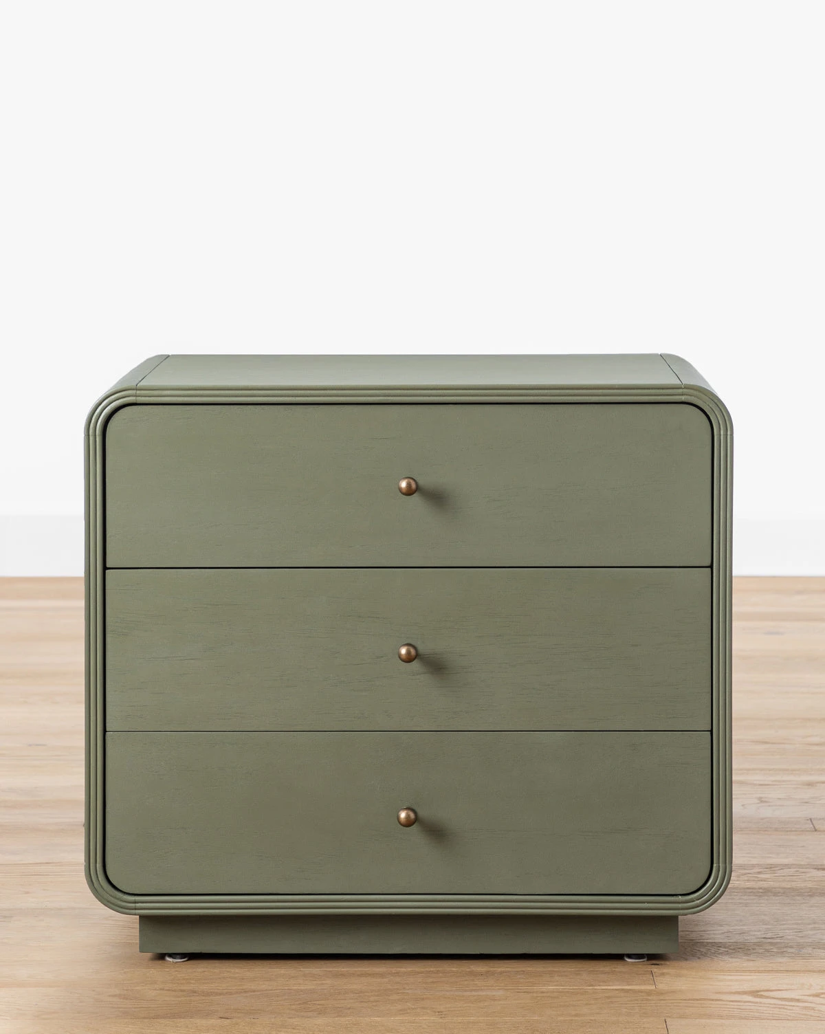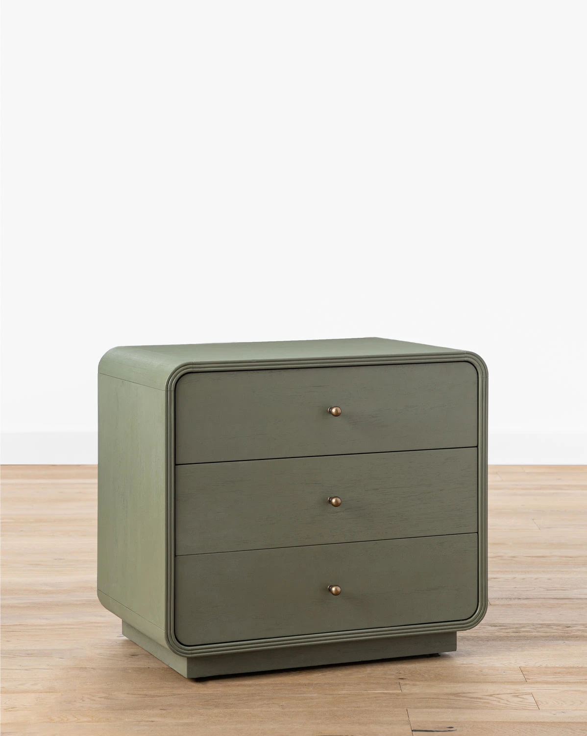 With soft, rounded edges, our Wilkins Laurel Nightstand is a sleek and elevated green nightstand. Crafted from acacia and featuring soft-close drawers finished with brass-plated hardware, the green nightstand brings both form and function to your bedroom design.