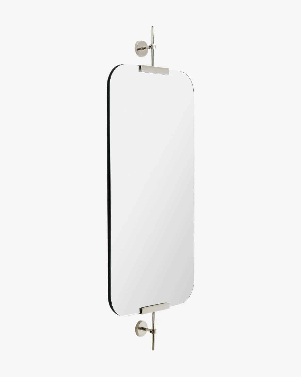 Add depth to your space with the Winona Mirror. Held by polished nickel or antique brass brackets, the mirror slightly hovers against the wall. Its creative design makes a modern impact in both small and large spaces.
