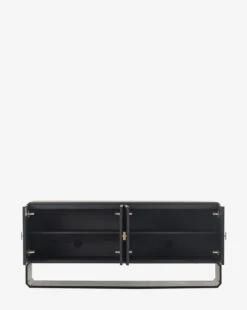 The Ziggy Sideboard is modern and geometric, effortlessly elevating your space. Its four doors open to generous storage, while its black ash veneer construction lends a sleek base for entryway vignettes. With diagonal fluting-like texture on each door and sleek iron hardware, the sideboard brings refined detail to your decor.